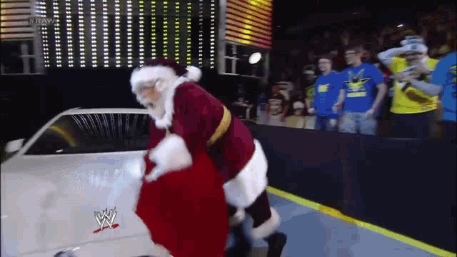 Lo show si apre in modo apparentemente normale. L’aristocratico messicano Alberto Del Rio fa il suo classico ingresso nell’arena guidando una delle sue costosissime auto di lusso. Ma dietro le quinte, succede l’impensabile. Del Rio sbanda e investe accidentalmente una figura vestita di rosso. Le telecamere staccano immediatamente sulla scena dell’incidente: steso a terra, immobile, c’è niente meno che Babbo Natale.